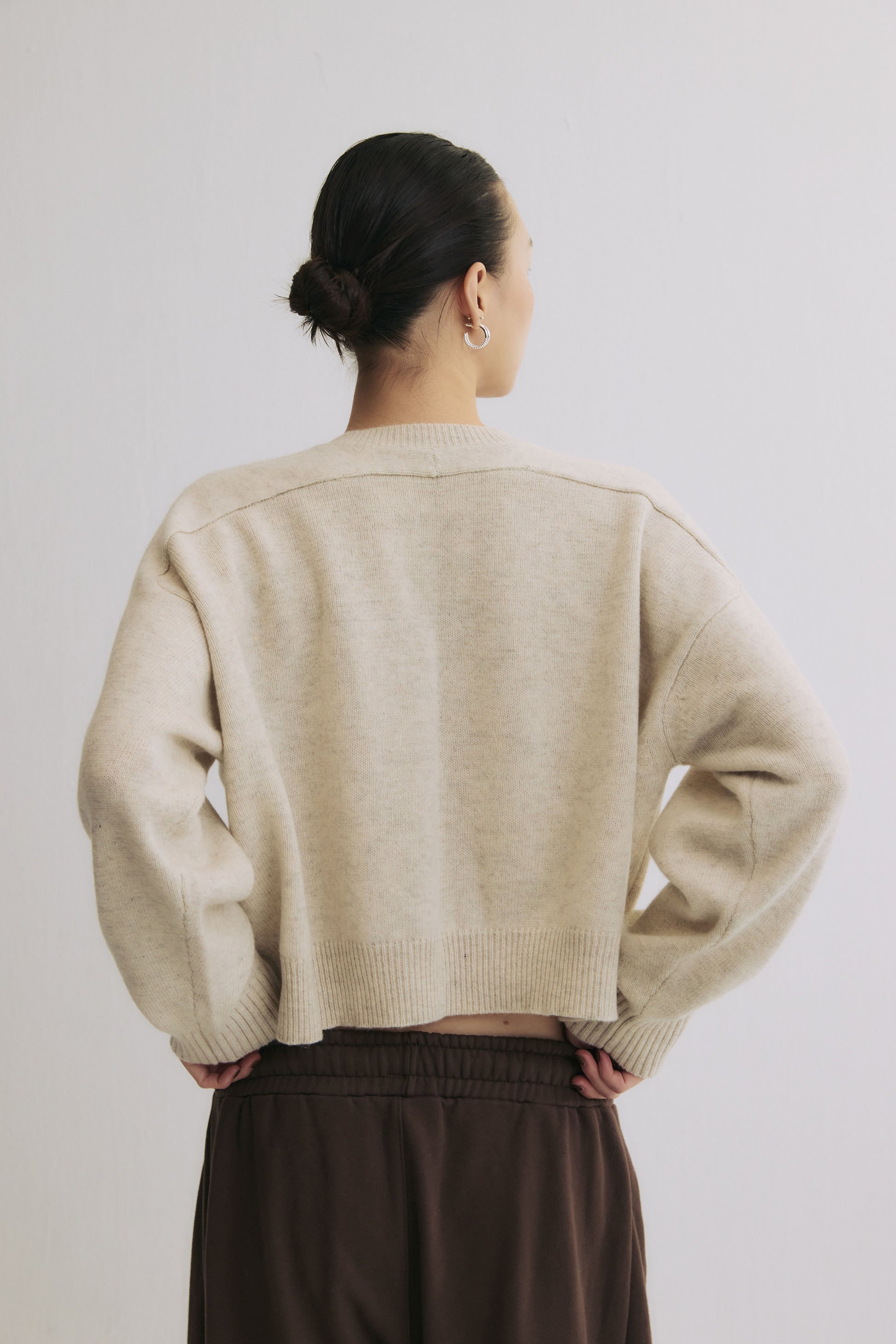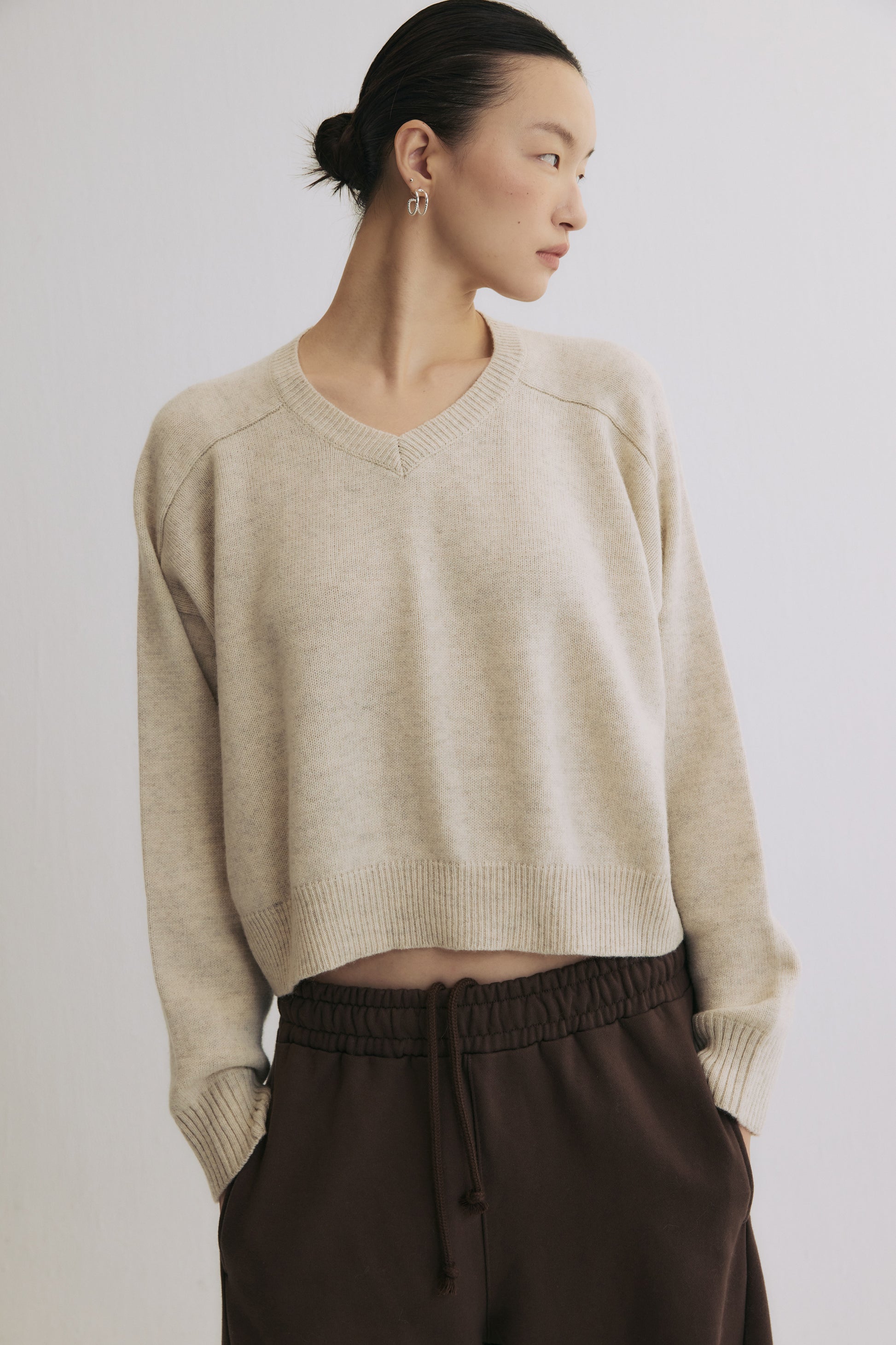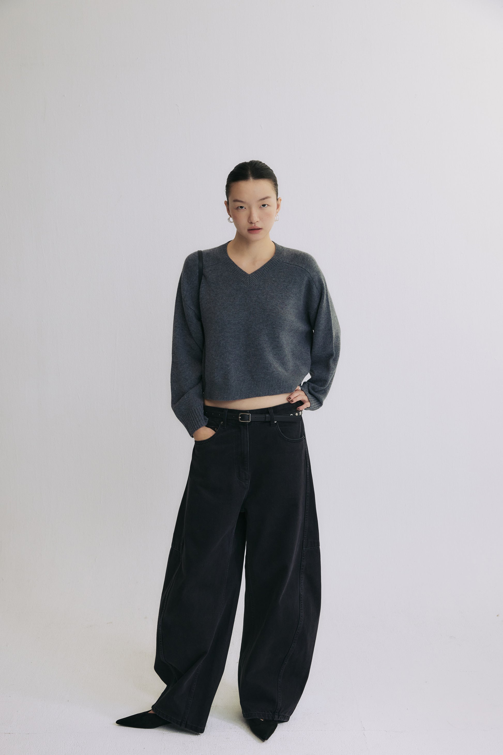 Cut in SLO’s signature boxy silhouette, it features clean lines and a relaxed structure that moves with ease. The delicate V-neck adds a subtle touch of elegance, elongating the neckline while remaining minimalist and versatile. Wide ribbed cuffs and hem provide a sculpted finish, giving the sweater both structure and casual fluidity. A timeless layer that embodies thoughtful simplicity.