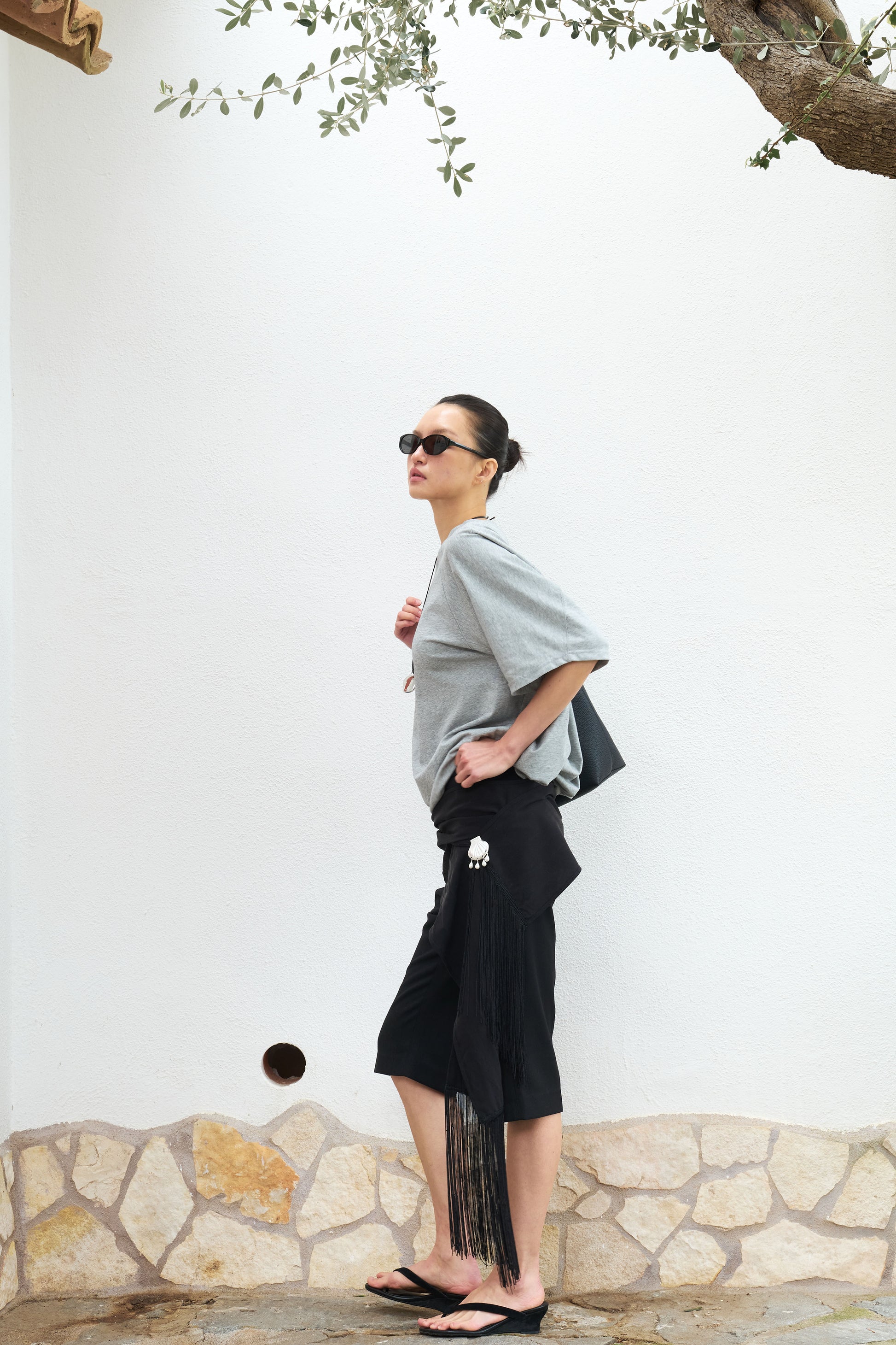 Crafted from copper alloy with thick 18K white gold plating, this brooch features a refined matte brushed finish that softens the metallic surface into a muted, velvety glow. The shell-inspired silhouette translates the texture of ocean waves into a clean, sculptural form, balancing structure with softness. A drop-shaped shell pearl pendant adds gentle movement, catching light with a natural luster that echoes the calm shimmer of the sea. Designed to elevate everyday dressing, it introduces a subtle point of elegance across tailoring, knitwear, and outerwear—an understated statement within a minimalist wardrobe.