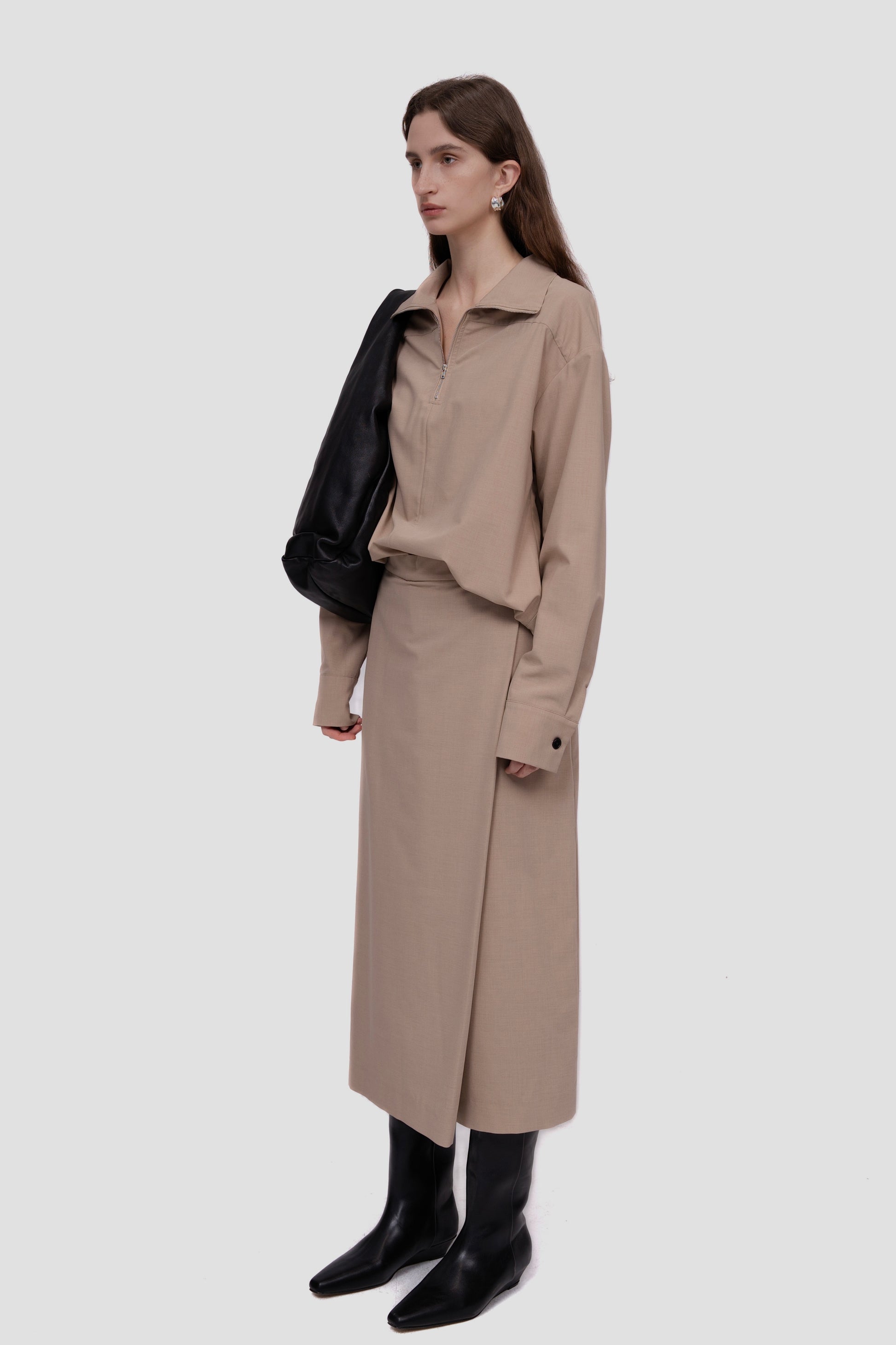 A wear-anywhere staple, our wool blend skirt features a wrap construction and wrinkle free design. Pair perfectly with our SLO Signature Boyfriend Blazer and Half Zip Sweatshirt.