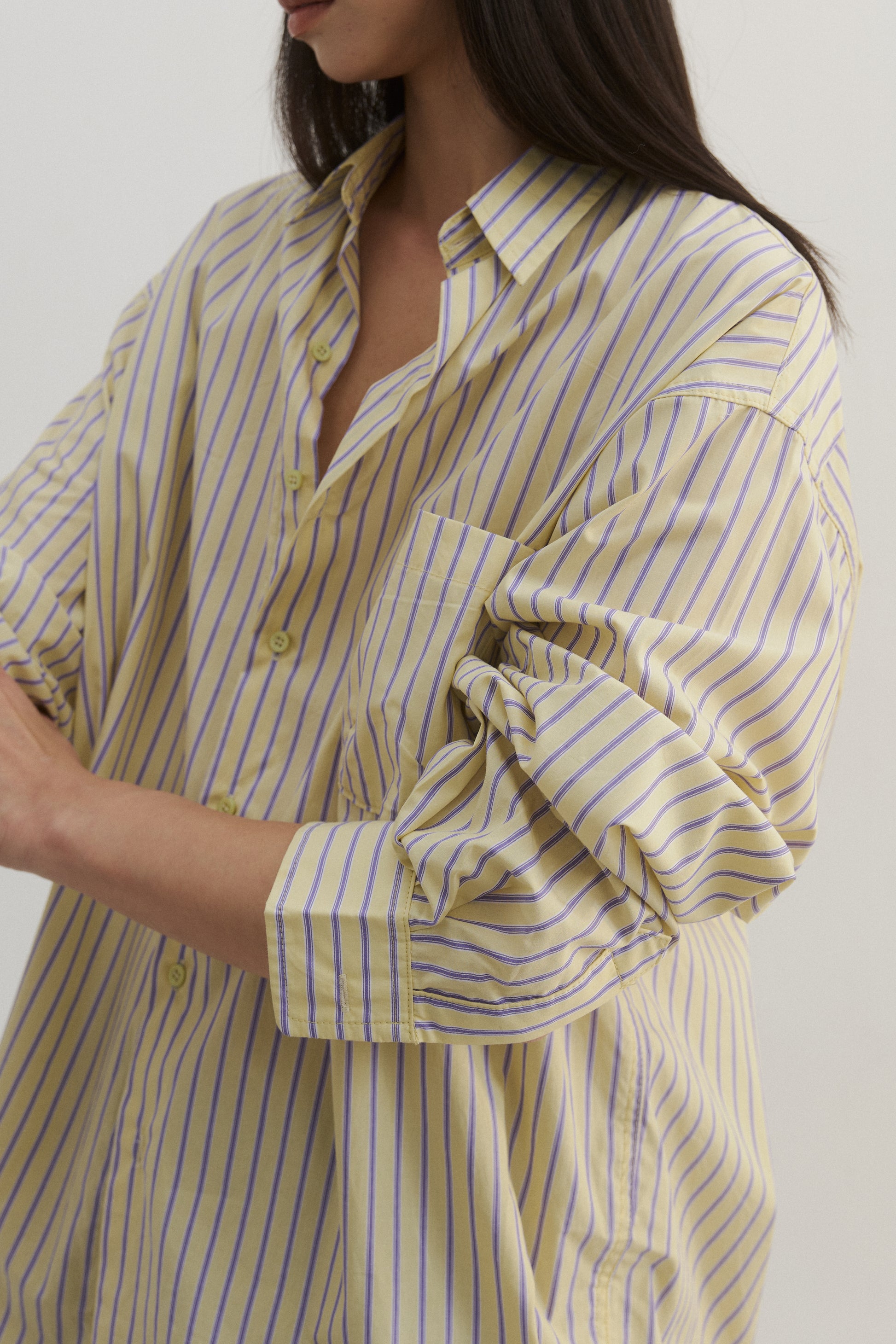 這款男友風襯衫既休閒又不失高檔的美感。它具有寬鬆的版型、弧形下擺和一個前貼袋,這些都是經典襯衫設計的元素。雙紐扣造型適合多種穿著 - 選擇輕鬆、休閒的造型或收緊腰部以獲得更明確、更合身的輪廓。