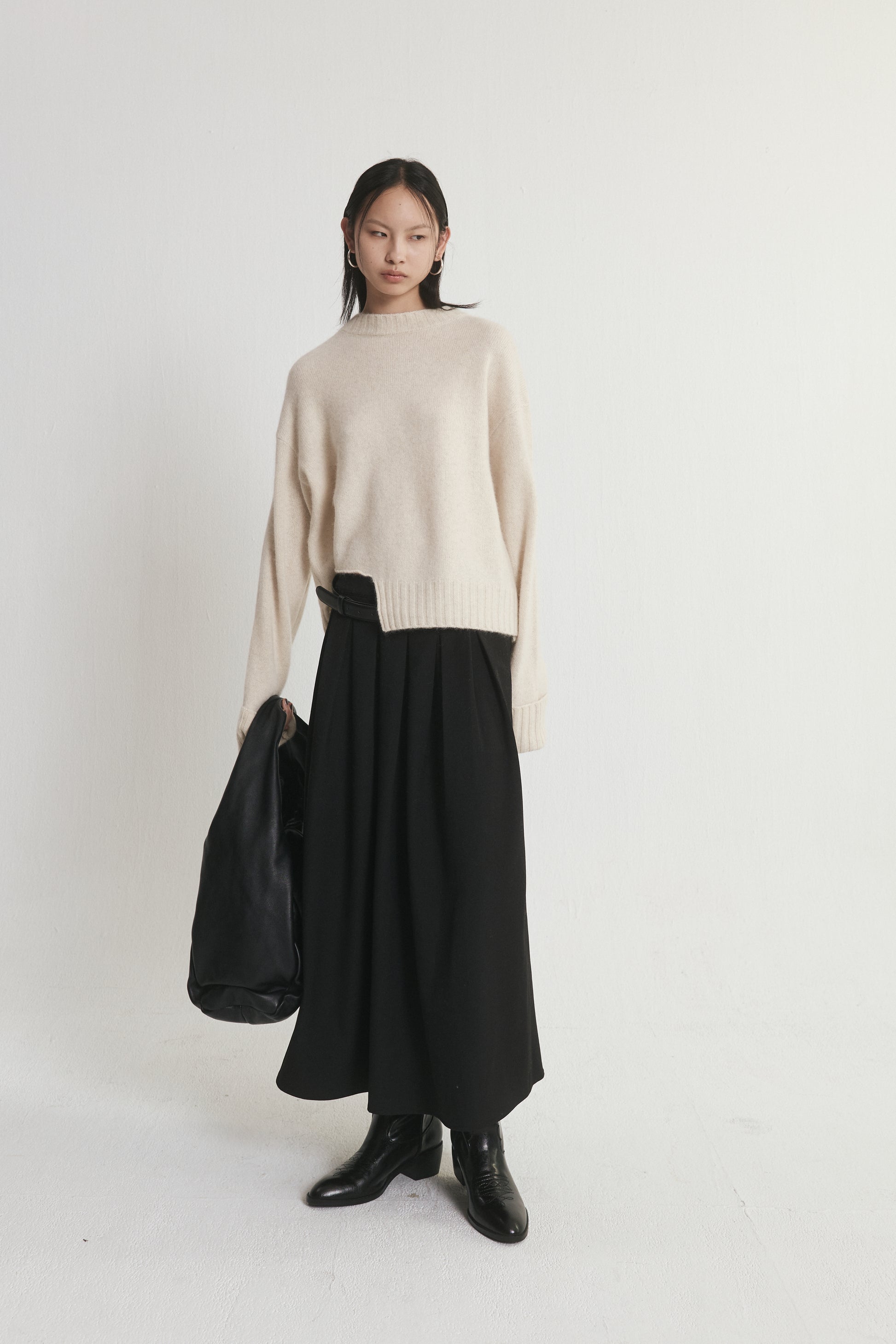 柔軟的犛牛毛為這款寬鬆的圓領毛衣帶來奢華的舒適感,毛衣設計包含缺口設計細節,展現精湛工藝與經典魅力——是SLO的極簡必備款。