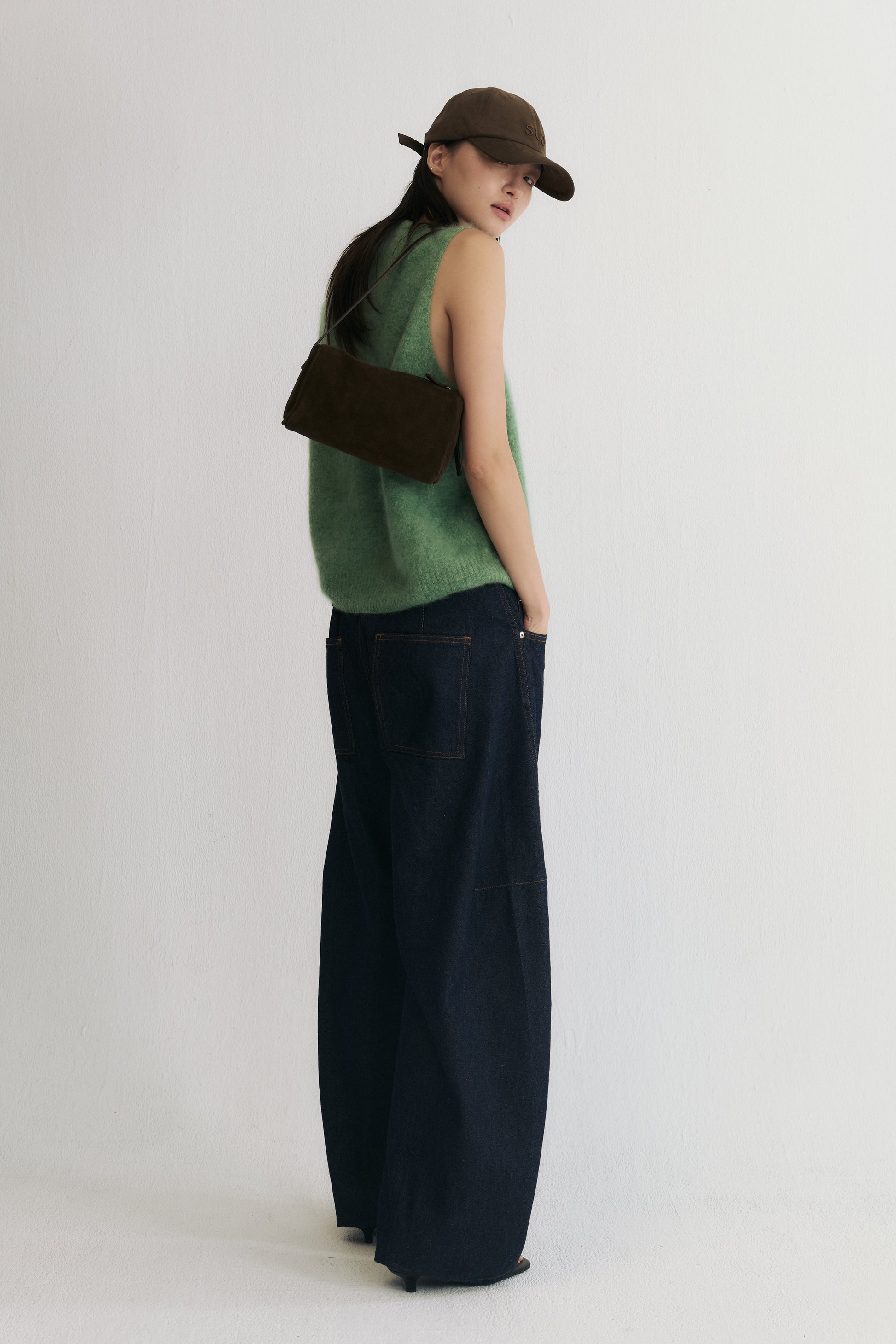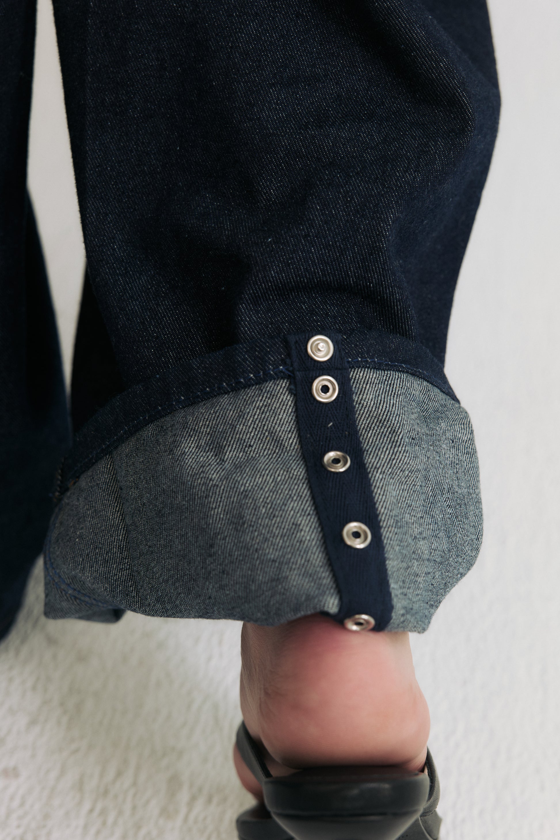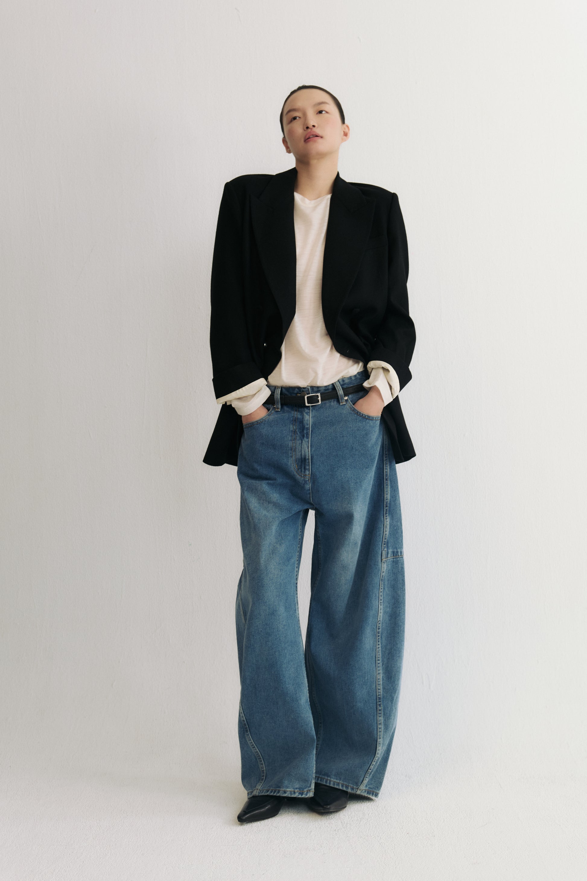 解構彎刀褲以升級版弧形褲型重新詮釋經典廓形——外側弧線與內側直線交織,塑造更俐落的輪廓。側片拼接結構在修飾比例、拉長腿型的同時,保有隨性自在的著感。褲腳內藏式暗扣設計,可依造型與鞋款快速調節長度,增添穿搭變化。嚴選 100% 新疆長絨棉高密斜紋丹寧布料,挺闊有型且穿著舒適,不易鼓包變形,並經環保復古水洗工藝處理,呈現層次豐富的色澤。推出經典四色——本白、洗黑、復古藍、生牛——無論日常層次穿搭或街頭亮眼造型皆能輕鬆駕馭。
