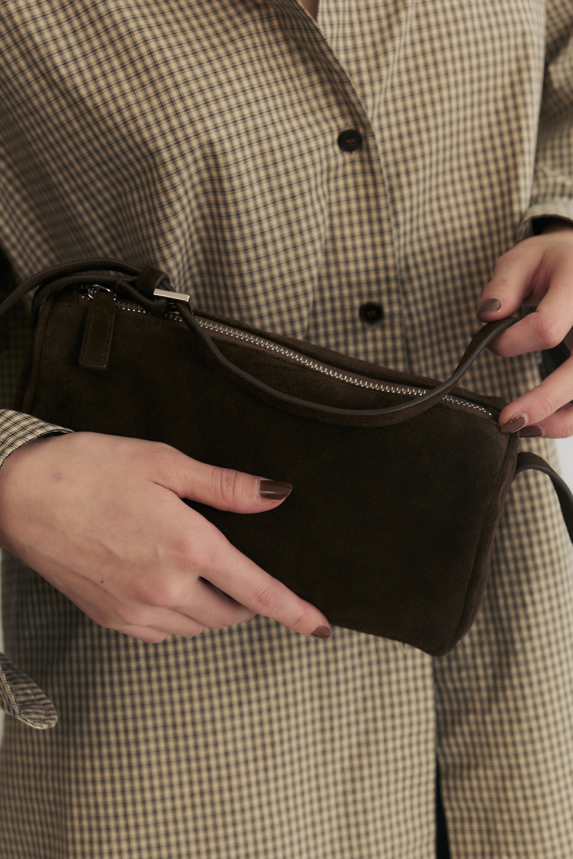 SLO吐司包以簡潔的延伸車縫線搭配立體有型的廓形,凸顯建築感結構之美。升級容量輕鬆容納日常通勤所需,搭配加長可調節肩帶,靈活切換單肩或斜背,多種背法滿足不同需求。經典黑款選用柔軟細膩的頭層牛皮,觸感溫潤並帶有細緻光澤,兼具柔韌與輕盈;棕麂皮款則以頭層牛皮細緻打磨呈現均勻絨面與低調光澤,散發復古高級質感。簡約而實用,輕鬆遊走於通勤與休閒場合,成為日常衣櫥的萬用包款。